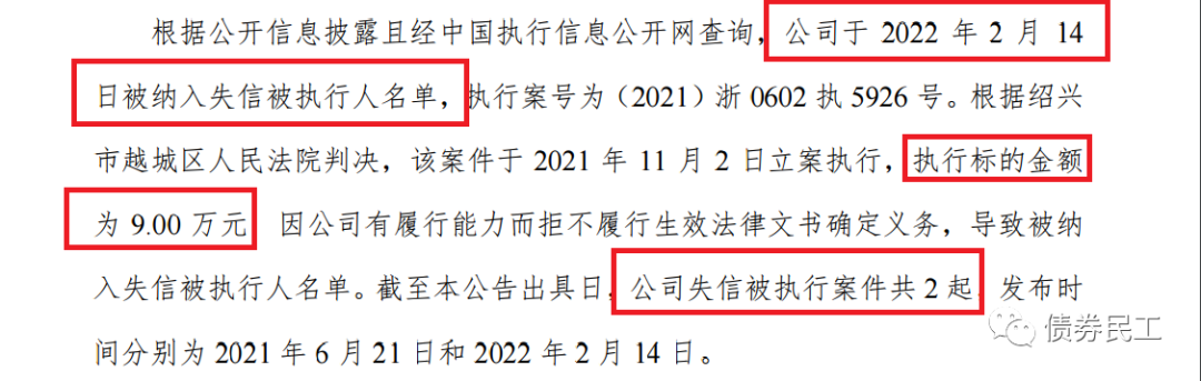 根據評級公司于2022年2月24日披露的關注公告,某城投公司因為執行標的金額為9萬元的案件有履行能力而拒不履行相關義務,于2022年2月14日被納入失信被執行人名單。你沒看錯,執行標的金額真的是只有9萬?。?!