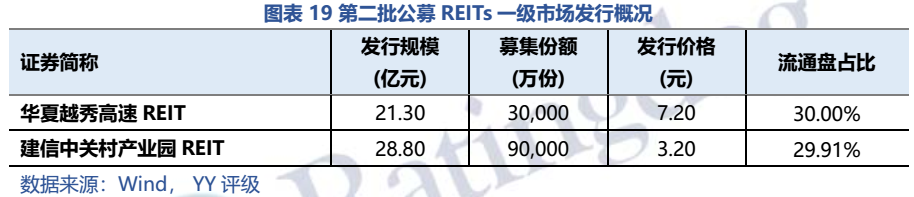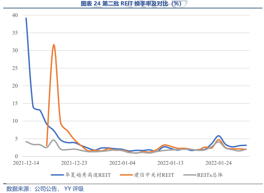 第二批公募REIT只有兩只:華夏越秀高速REIT和建信中關村REIT,整體看底層資產優秀,建信中關村REIT的現金流分派率處于園區類前列。第二批公募REITs認購“火爆”,網下和網上的配售率均不足3%;上市前幾日溢價率最高達38%、40%,之后企穩,但收益率仍高于REITs同類的其他產品。整體看,受益于底層資產的優質、現金分派率較高(建信中關村REIT)以及投資者情緒的高漲,第二批REITs表現亮眼。