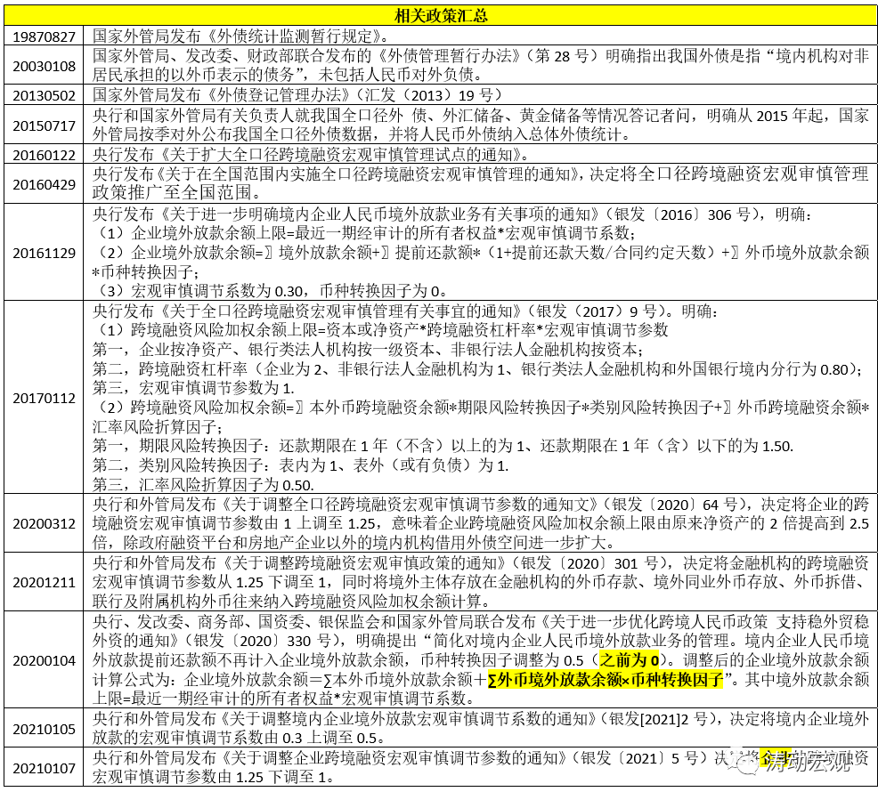 (一)在資金進來層面,主要通過2017年1月央行發布的《關于全口徑跨境融資宏觀審慎管理有關事宜的通知》(銀發(2017)9號)來約束,這里的約束對象既包括銀行,也包括非金融企業。