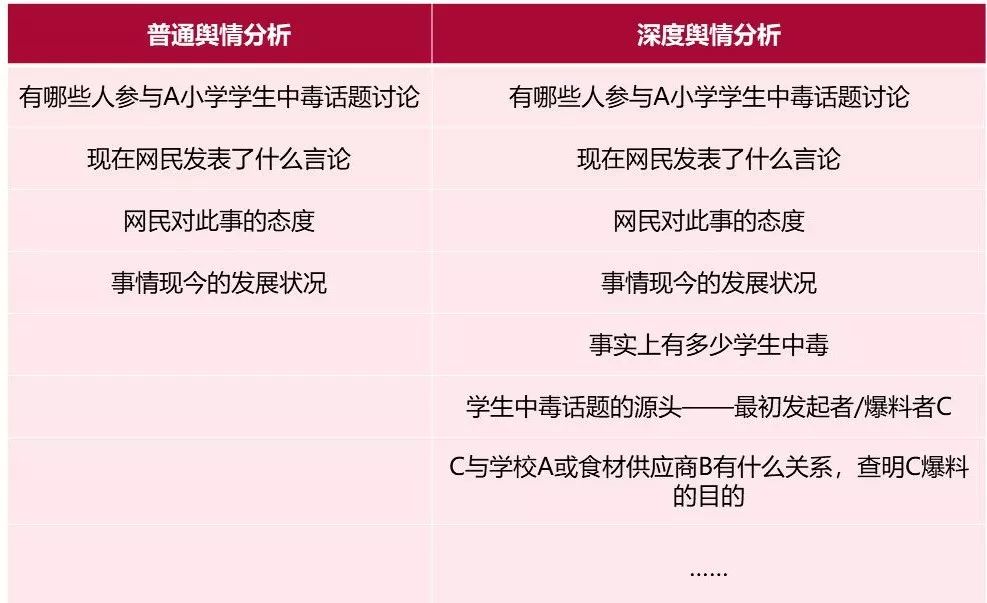 這是一起曾經發生的真實社會事件,下圖為當時一般的輿情機構調查結果和情報官的深度輿情調查結果所能揭示的內容對比: