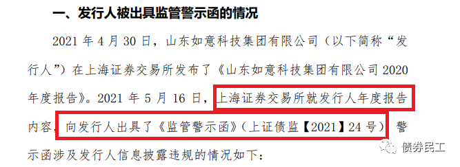 債券民工昨天在債券存續期受托管理很重要!兩家證券公司受處罰!一文中關注到,華西證券和宏信證券因債券存續期受托管理事項被證監會四川監管局處罰,今天就又看到了東北證券股份有限公司的公告,因未充分履行督導山東如意科技集團有限公司2020年年度報告披露義務,被證監會山東監管局局出具警示函的監管措施。