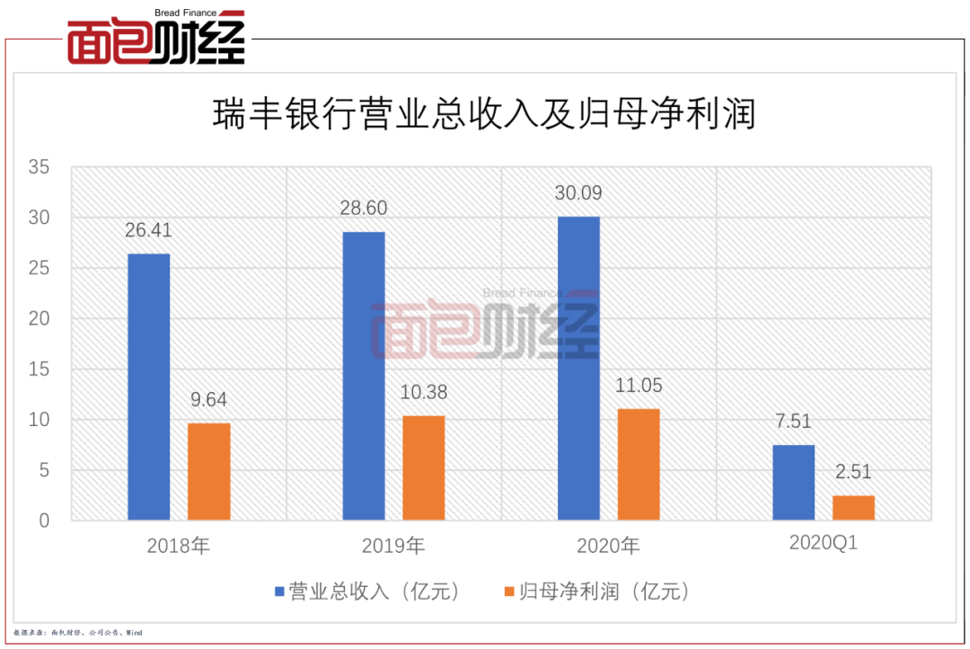 招股書顯示,近幾年瑞豐銀行的營收及歸母凈利潤總體呈增長趨勢。2020年,該行實現營收30.09億元,較上年同期增長5.19%;實現歸母凈利潤11.05億元,較上年同期增長6.4%。