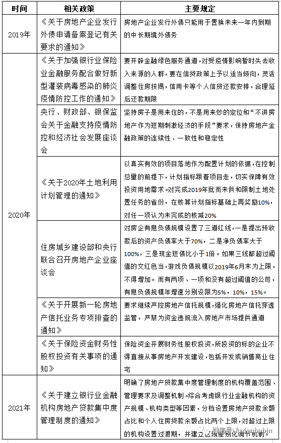 2019年6月份開始,地產行業再融資業務幾乎全面收緊,無論是信貸、境外債還是非標融資等。2019年7月6日,中國銀保監會針對部分房地產信托業務增速過快、增量過大的信托公司進行約談警示;2019年7月10日,中國銀保監會針對部分房地產貸款較多,增速較快的銀行進行窗口指導,要求控制房地產貸款額度;2020年2月21日,央行召開2020年金融市場工作會議,要求保持房地產金融政策的連續性、一致性和穩定性,繼續“因城施策”落實好房地產長效管理機制,促進市場平穩運行。2020年11月25日,多家信托公司收到來自監管部門的窗口指導,要求嚴格壓降融資類信托業務規模,按照年初規劃,2020年全行業壓降1萬億具有影子銀行特征的融資類信托業務,意味著房企融資將會進一步收緊。