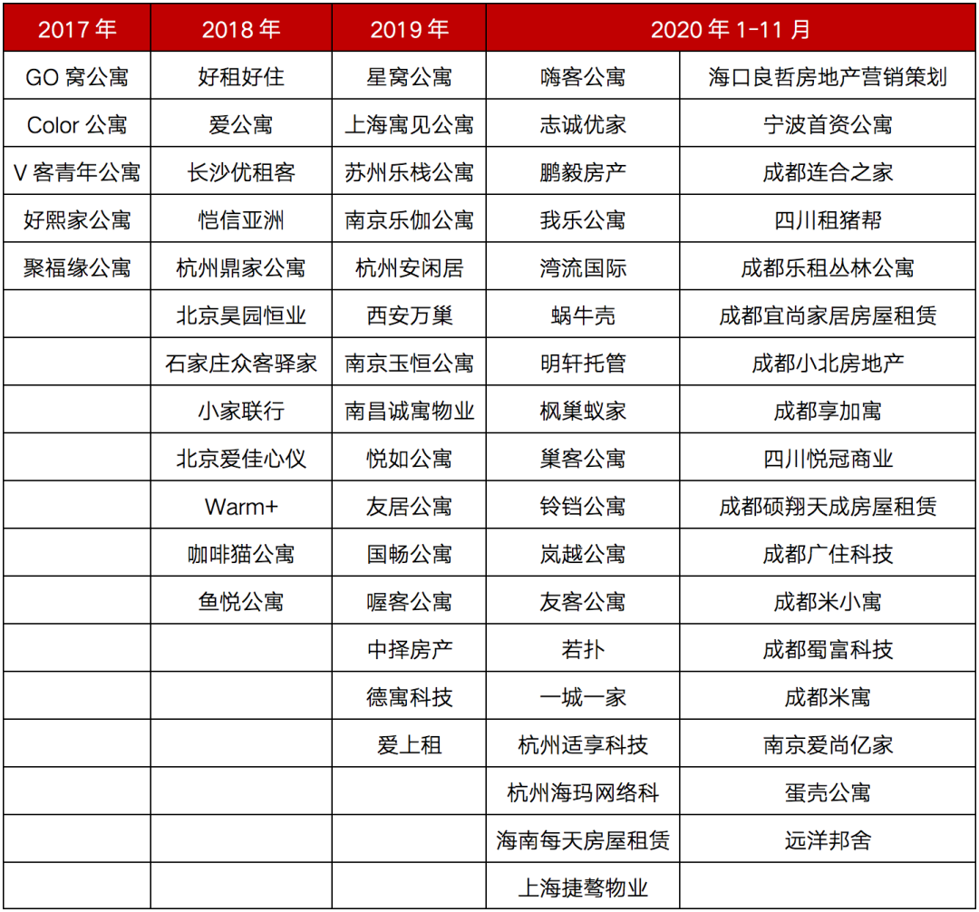 圖:2017年-2020年11月長(zhǎng)租公寓企業(yè)爆雷數(shù)量