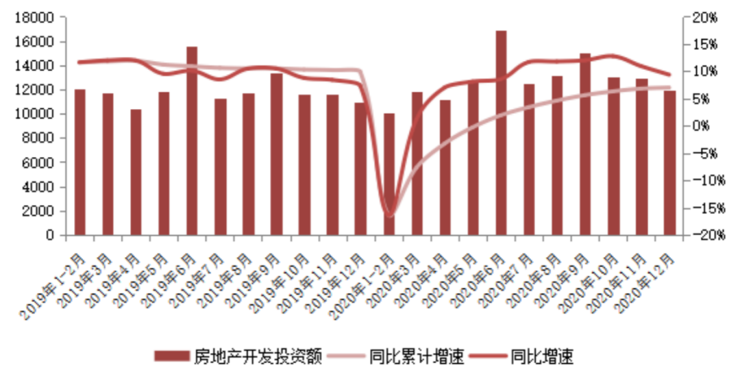 2020年房地產(chǎn)開發(fā)投資額月度規(guī)模整體可以概括為“前增后穩(wěn)”兩個階段。
