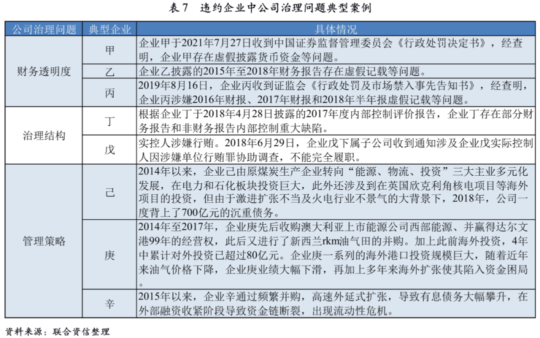 國內(nèi)債券市場信用違約中公司治理問題屬于高發(fā)性因素,將ESG中公司治理因素的納入可以增強信用違約中風險預(yù)警作用。