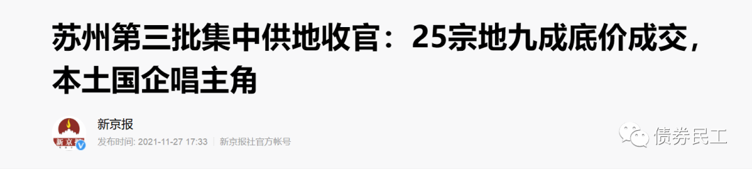 2021年11月24日至26日的蘇州市第三批集中供地中,蘇州市相城城市建設(shè)投資(集團)有限公司、蘇州蘇高新集團有限公司、蘇州市吳江濱湖投資集團有限公司等城投公司的均摘得一定的土地使用權(quán)。