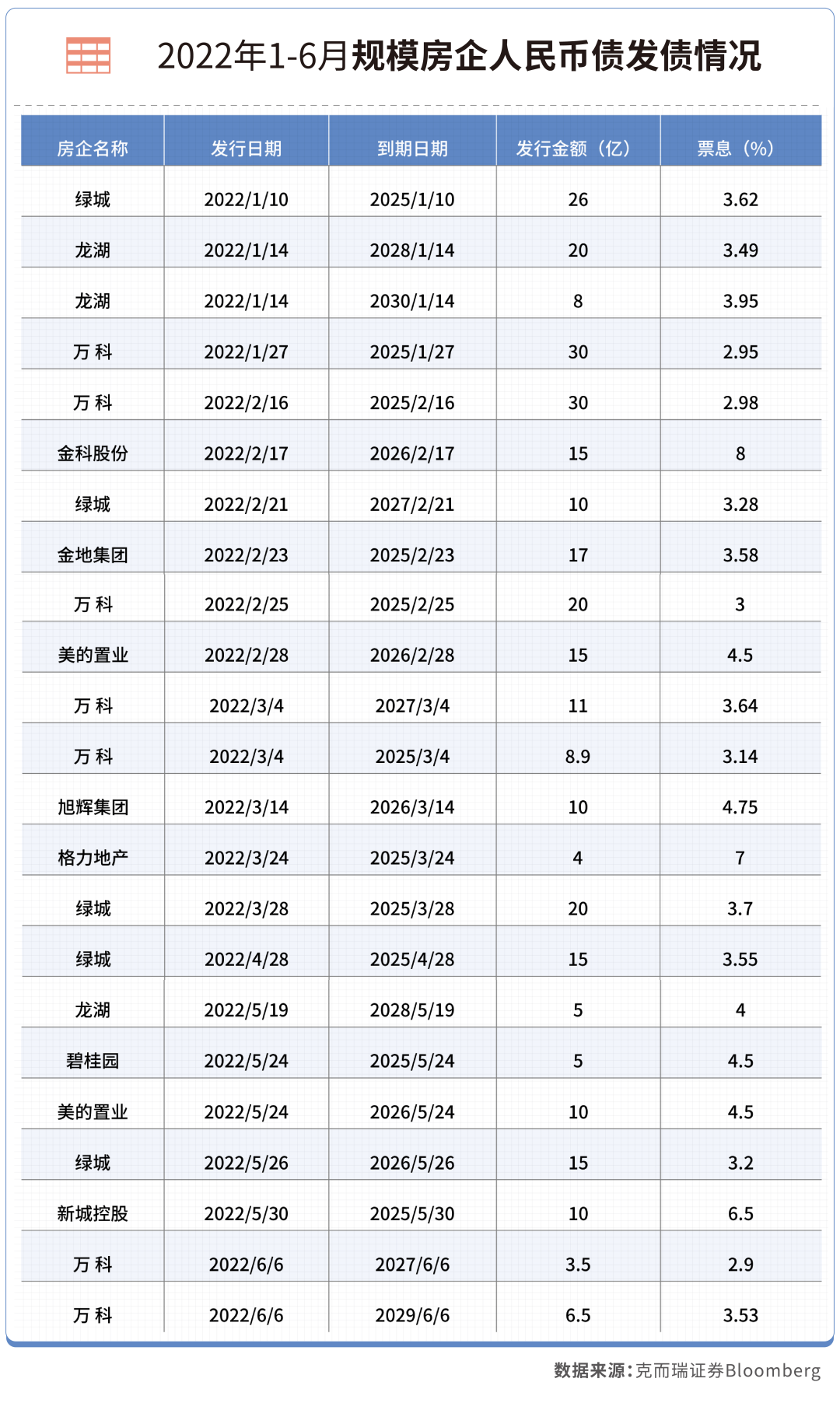克而瑞證券數據顯示,截止6月8日,民營房企人民幣債累計發行10筆共115億元,平均融資成本為4.7%。最高額度為龍湖發行的一筆20億元的公司債。