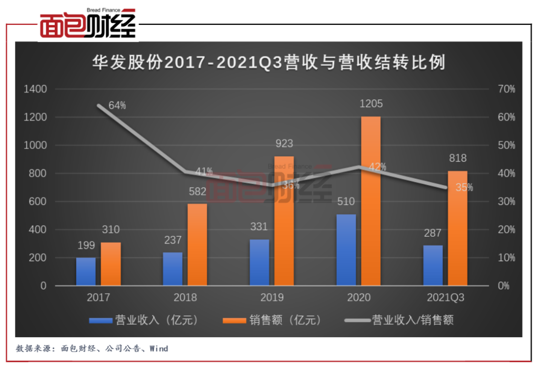圖2:華發(fā)股份2017-2021Q3營收與營收結轉比例