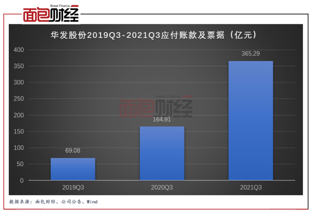 圖3:華發(fā)股份2019Q3-2021Q3應付賬款及票據(jù)