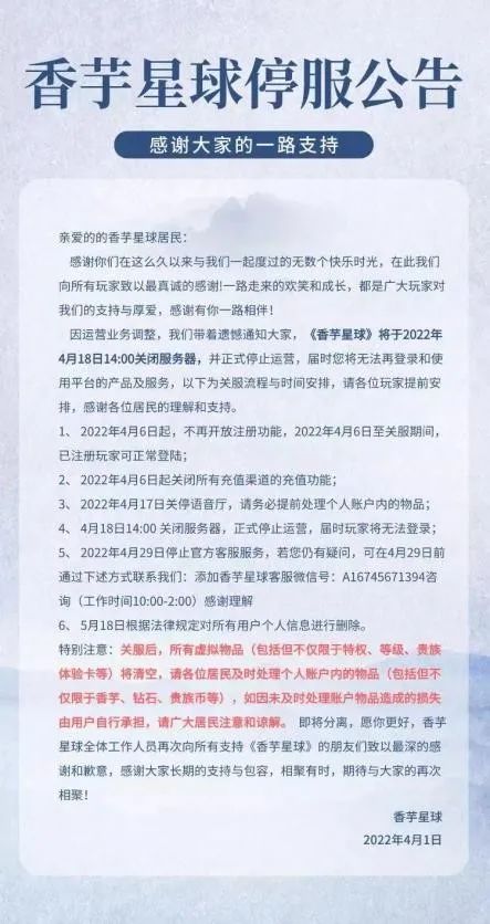傳統游戲領域的侵權行為中,涉及虛擬財產的案件占了主導。在游戲中,玩家以一定的資金購買裝備、道具、角色等虛擬財產,并在游戲中享有使用權,但實際上這些虛擬財產只是呈現出來的視覺效果,根本上來說只是一串代碼,而非實實在在的物件。盡管游戲所營造出虛擬空間中的財產并不具有直接的經濟價值,但一旦受到侵犯,必定會損害玩家的合法權益。對于玩家虛擬財產的侵犯,有以下三種可能:其一,是黑客進入系統篡改了玩家的游戲數據;其二,是其他玩家以某種手段破壞了賬戶(例如盜號);其三,則是游戲停服,使得玩家的財產被迫消失,例如香芋星球在停服通告中表示,所有玩家的物品都將被清空。
