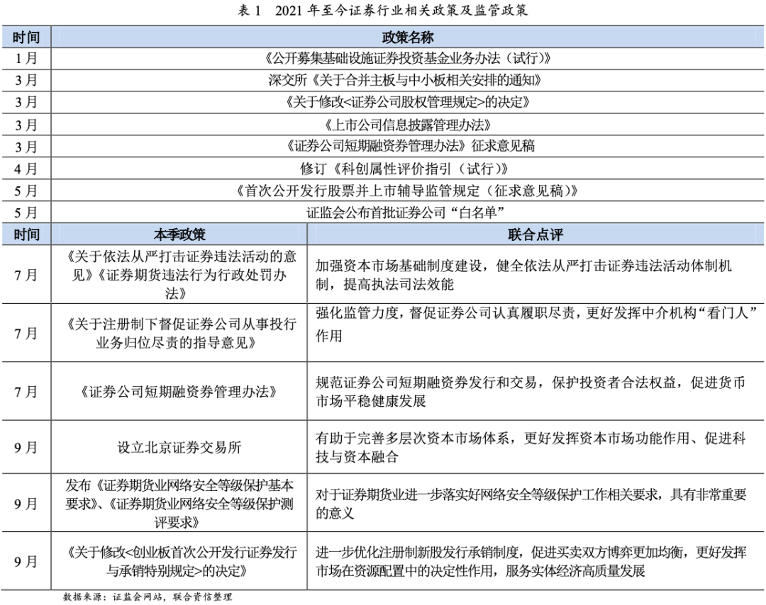 資本市場改革持續(xù)深化,“北交所”成立,打造服務(wù)創(chuàng)新型中小企業(yè)主陣地,多層次資本市場體系進一步完善;行業(yè)延續(xù)嚴(yán)監(jiān)管。