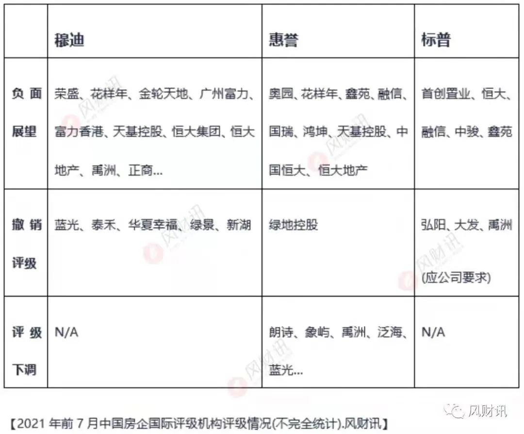 同時,藍光、泰禾、華夏幸福、綠景控股等十余家房企,在三大國際機構“撤銷評級”了,有些是主動有些是被動。