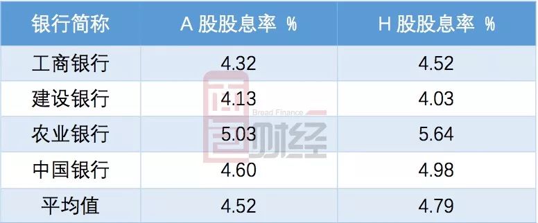 四大行2016年2月底港股股息率都在7%以上,A股股息率都在5%以上。