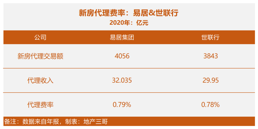 新房代理來看,以易居和世聯行的數據:費率約為0.78%。