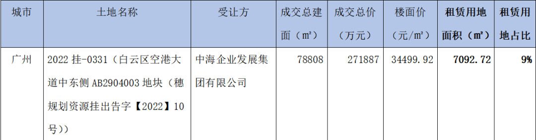 五城涉租賃用地拿地的主角依舊為國(guó)央企。五城成交的租賃用地中,最大一宗租賃用地被越秀以2.01億元競(jìng)得,該地塊位于廣州市白云區(qū)廣龍路,純租賃用地,建設(shè)面積約6.9萬(wàn)平方米。