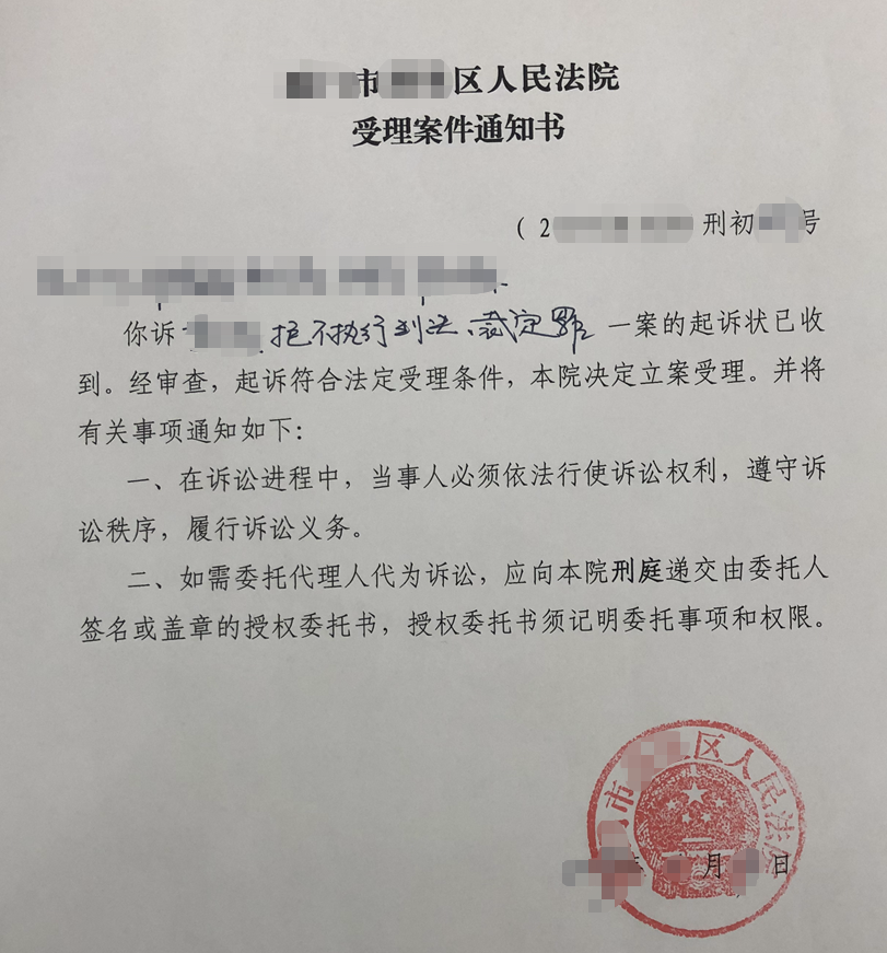 于是,我們立即改變方案,選擇提起刑事自訴。向管轄的公安部門提出控告,經(jīng)過(guò)多輪的座談、溝通,取得不予立案受理通知書,最終在管轄法院成功立案。過(guò)程曲折,但在做好充分、扎實(shí)的準(zhǔn)備工作,有充足的法律依據(jù)下,自訴的方案是可行、有效的。