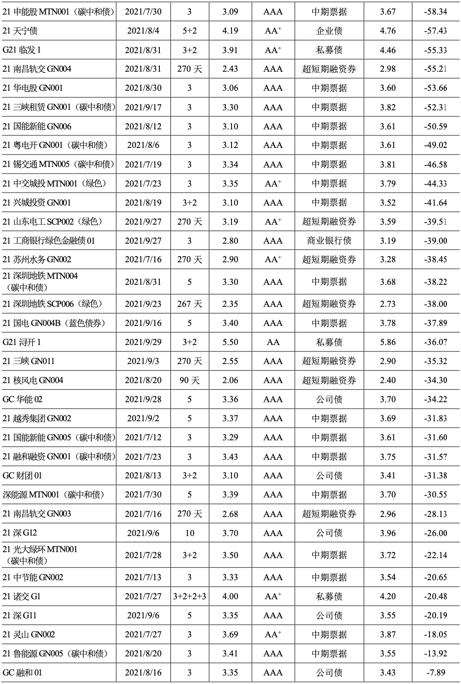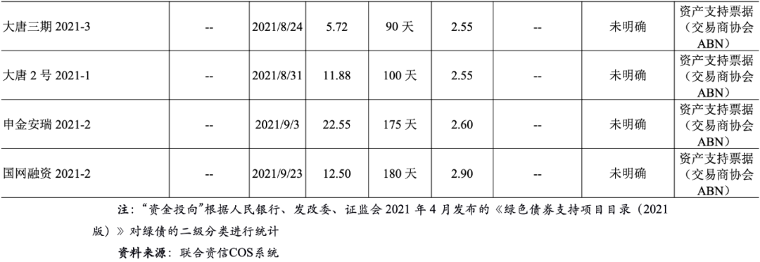 2021年8月31日,南方電網(wǎng)公司發(fā)行“南網(wǎng)融資租賃公司2021年度融資租賃第一期綠色資產(chǎn)支持商業(yè)票據(jù)(ABCP)”,發(fā)行規(guī)模16億元,票面利率2.58%,發(fā)行期限120天,募集資金將用于風(fēng)力和光伏發(fā)電項(xiàng)目。該債券系全國(guó)首只公募碳中和資產(chǎn)支持商業(yè)票據(jù),據(jù)綠色評(píng)估機(jī)構(gòu)測(cè)算,本期票據(jù)募集資金用于碳減排項(xiàng)目,將實(shí)現(xiàn)年減碳排量114.47萬(wàn)噸。(摘自中國(guó)新聞網(wǎng),2021年8月31日)