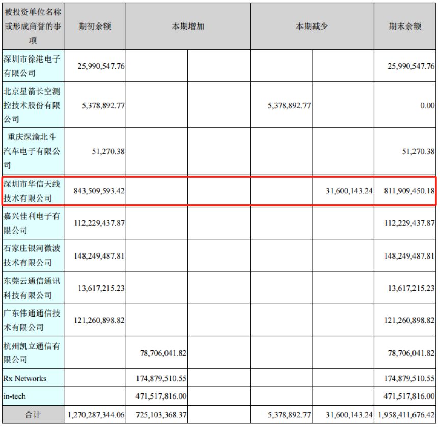 這筆商譽(yù)的形成要追溯到2015年。2015年7月,北斗星通以發(fā)行股份及支付現(xiàn)金相結(jié)合的方式購(gòu)買華信天線100%股權(quán),交易對(duì)價(jià)10億元,合并形成商譽(yù)約8.44億元。