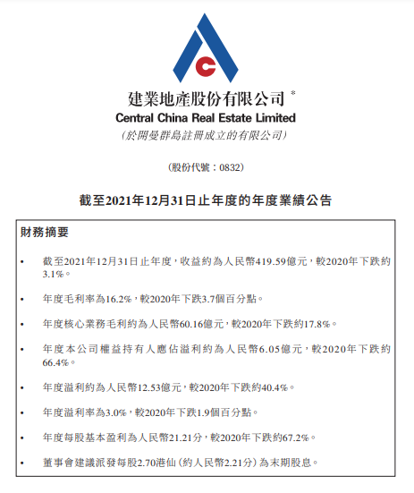 傳聞得到證實,建業面臨的大考全方位浮出水面。日前,水災、疫情等多重不可抗力影響下的建業地產,“大方”地公布了2021年嚴重下滑的成績單。