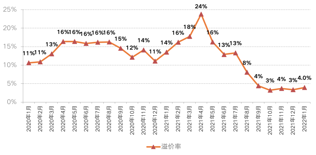 首月全國土地成交平均溢價率為4.0%,環(huán)比略有回升,但整體仍處于低位。