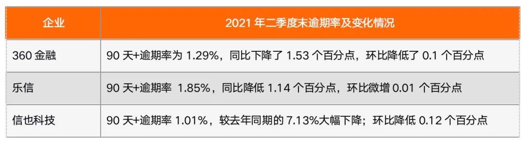 五、以90天+逾期率衡量,3家平臺(tái)的資產(chǎn)質(zhì)量環(huán)比改善或保持穩(wěn)定