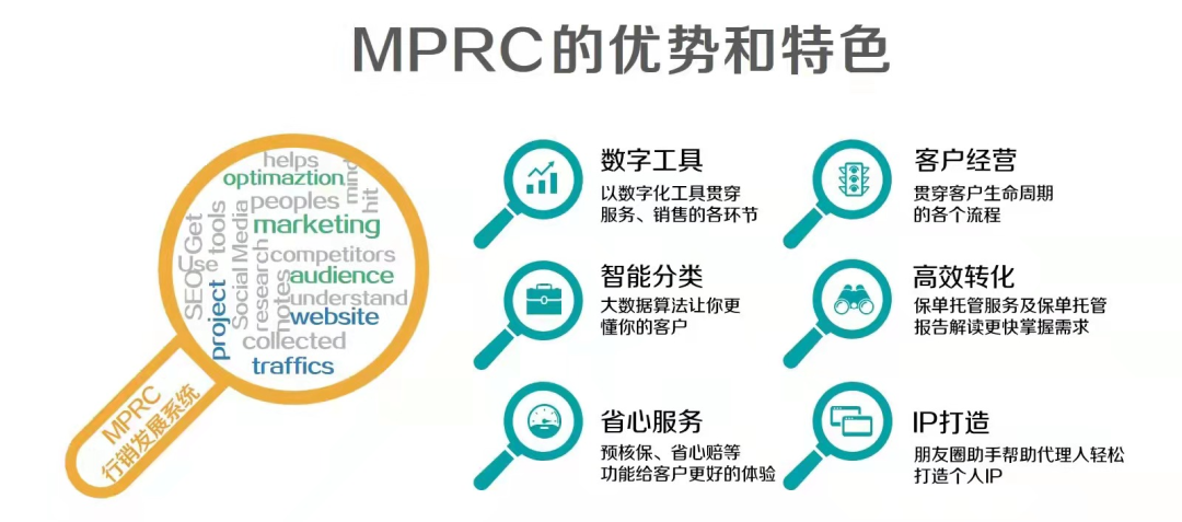 這里再來劃一個重點:通過使用MPRC行銷發(fā)展系統(tǒng),保險代理人的展業(yè)效率和展業(yè)能力獲得顯著提升。數(shù)據(jù)統(tǒng)計,保險代理人可觸達(dá)訪客增長了28.2%;人均保單漲幅16%、人均保費漲幅16%;代理人出單率從25.7%漲到了27.6%。