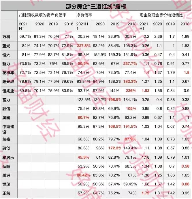 陽(yáng)光城是兩條紅線達(dá)標(biāo),佳兆業(yè)是三條紅線達(dá)標(biāo),這樣的財(cái)務(wù)指標(biāo),沒能經(jīng)受住銷售端的現(xiàn)金流凍結(jié),以及融資端的現(xiàn)金流失。