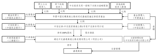本基金的基金管理人為華夏基金管理有限公司,資產(chǎn)支持證券管理人為中信證券股份有限公司,本基金的托管人為中國農(nóng)業(yè)銀行股份有限公司。基金管理人聘請中交投資有限公司及中交投資湖北運營公司為運營管理機構(gòu),提供運營管理服務(wù)。上述基礎(chǔ)設(shè)施基金的整體架構(gòu)符合《公開募集基礎(chǔ)設(shè)施證券投資基金指引(試行)》的規(guī)定。