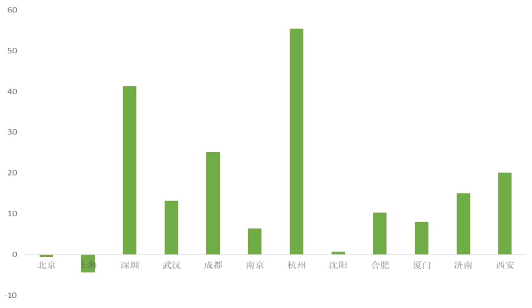 從各城市人口流入情況來看,對學歷型人才租賃補貼力度更大的城市,人口流入數量也更多。深圳、杭州、成都、武漢的補貼標準相對城市租金而言,能夠解決租房壓力,同時,這些城市的人口流入情況也更加樂觀;而從另一個角度來看,人口凈流入大的城市對人才提供租房補貼對于緩解城市居住壓力更有必要性和實際意義。