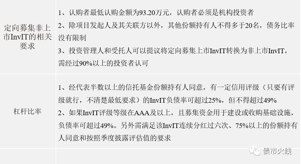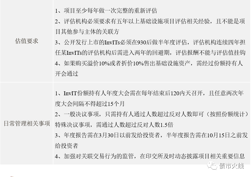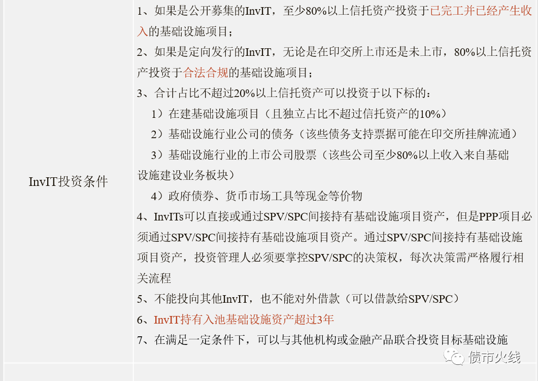 印度證券交易管理委員會(SEBI)于2007年發(fā)布REITs監(jiān)管文件草案,通過與政府部門、地產(chǎn)開發(fā)商和投資者的合作磋商并借鑒國外成熟市場的經(jīng)驗(yàn),最終在2014年頒布了目前施行的REITs監(jiān)管文件,2019年4月India’s maiden REITs的上市讓印度REITs最終破繭而出。在REITs監(jiān)管文件和產(chǎn)品上市的同時,印度的invITs也是在同步發(fā)展,目前已有“Indian Grid Trust”和“IRB INvIT Fund”兩只產(chǎn)品在NSX上市。其實(shí)印度REITs和invITs載體均為信托,在產(chǎn)品結(jié)構(gòu)和監(jiān)管條款上有許多相似之處,以下就是對印度invITs的監(jiān)管規(guī)則進(jìn)行簡要的概述: