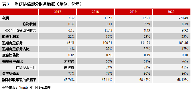 3、重慶協信:“盈利弱、高杠桿,外部支持不強”,化債難度大