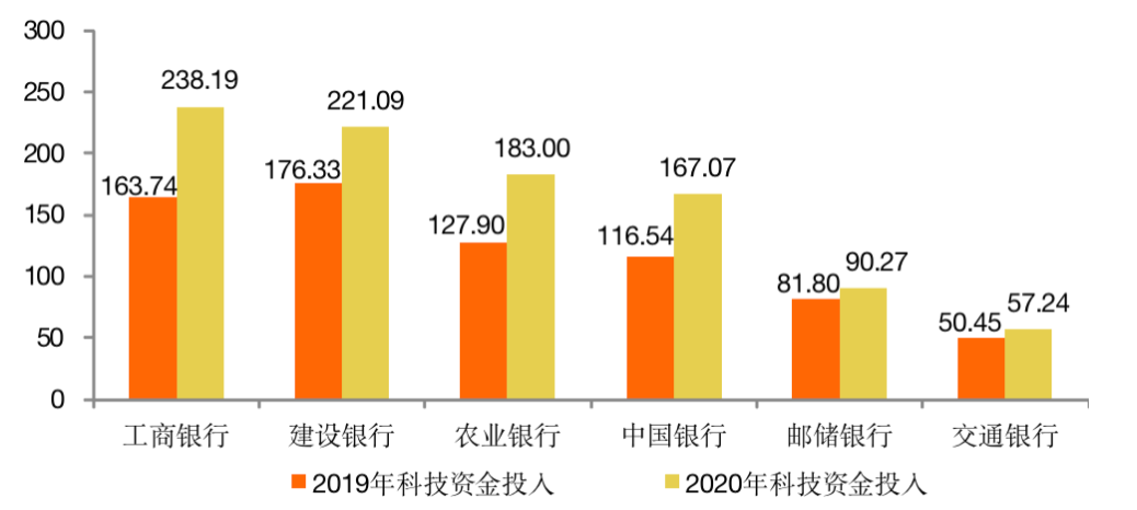 零壹智庫(kù)研究發(fā)現(xiàn),6家國(guó)有大行近兩年的科技資金投入逐步加大,尤其是工商銀行最高,2020年末達(dá)到238.19億元。零壹智庫(kù)注意到,工商銀行的智慧引擎所展現(xiàn)的強(qiáng)大科技實(shí)力,源自其早在2017年啟動(dòng)設(shè)立的云計(jì)算、大數(shù)據(jù)、人工智能、區(qū)塊鏈、物聯(lián)網(wǎng)等七大創(chuàng)新實(shí)驗(yàn)室,目前建立起一支涵蓋開發(fā)、測(cè)試、運(yùn)維等于一體、規(guī)模達(dá)到數(shù)萬(wàn)人的科技隊(duì)伍,技術(shù)實(shí)力長(zhǎng)期以來(lái)處于銀行業(yè)領(lǐng)先水平。