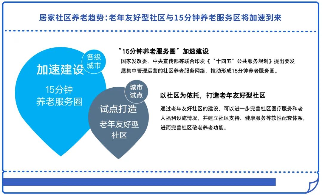 同時,后疫情時代,居家社區養老也將迎來系統性解決方案,15分鐘養老服務圈+老年友好型社區建設,將徹底激活居家社區養老服務;健康理念融入住宅成為行業共識,健康住宅將會加速發展。