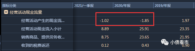 除此之外,大業(yè)股份的經(jīng)營獲現(xiàn)能力也在惡化,2020年和今年一季度其經(jīng)營性現(xiàn)金流凈額分別為-1.85億和-1.02億元。