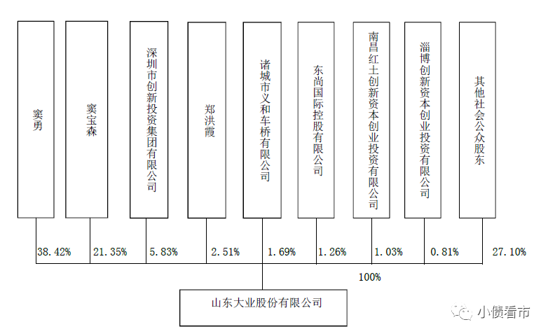 從股權結構看,大業(yè)股份的控股股東為自然人竇勇,持股比例為38.42%,公司實際控制人為竇寶森、竇勇父子,合計持有公司59.77%的股份。