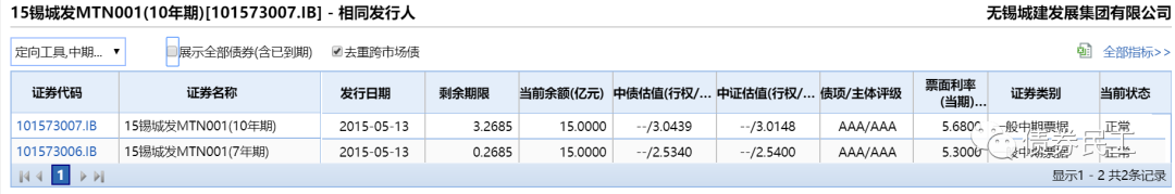 無(wú)錫城建發(fā)展集團(tuán)有限公司是無(wú)錫市國(guó)資委100%控股企業(yè),最新主體信用等級(jí)為AAA(大公國(guó)際)。無(wú)錫城發(fā)集團(tuán)的存續(xù)債券金額為30億元,主要是兩只中期票據(jù)。此次太湖新城不再納入無(wú)錫城發(fā)的合并報(bào)表之后,預(yù)計(jì)會(huì)對(duì)其產(chǎn)生一定的影響。