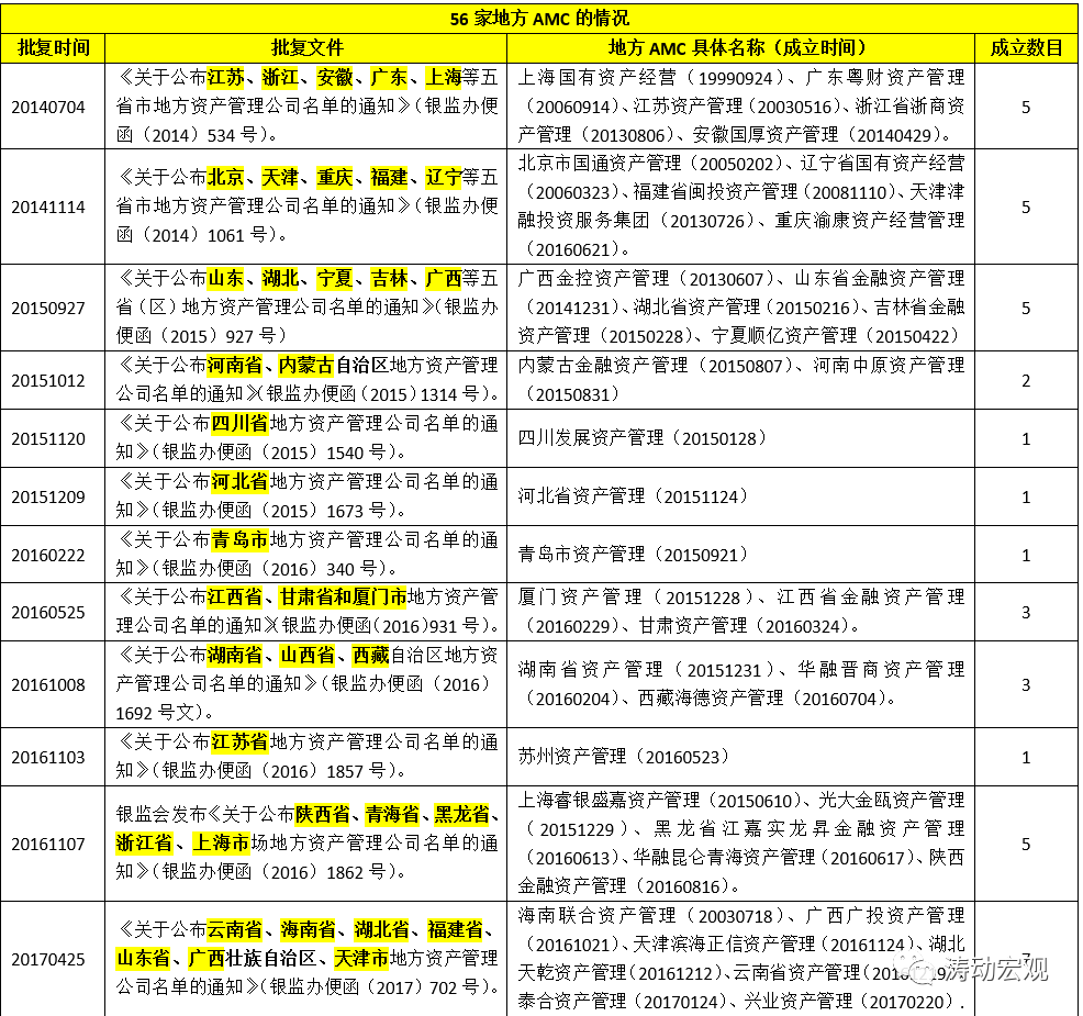 (3)2016年10月銀監會發布的《關于適當調整地方資產管理公司有關政策的函》(銀監辦便函[2016]1738號)允許各省可以增設一家地方AMC,并且在債務重組之外允許以對外轉讓等方式處置不良資產,且對受讓主體不受地域限制。
