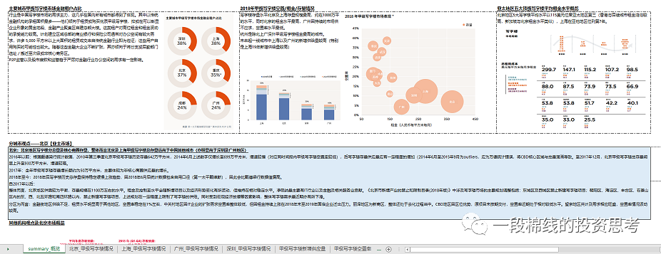 為了開展合理判斷,就需要對細(xì)分資產(chǎn)市場提前進行了解和持續(xù)跟蹤觀察。筆者在前一份工作開始就對寫字樓、購物中心、物流等典型商業(yè)物業(yè)資產(chǎn)進行了持續(xù)性信息收集工作。盡管公開信息往往不能直接指導(dǎo)具體交易的定價,數(shù)據(jù)也往往有滯后性,但連續(xù)的數(shù)據(jù)觀察仍然會給具體交易帶來很多啟發(fā),也會避免對特定市場投資出現(xiàn)大方向上的偏差。也就是前面提到的,有助于幫助自己“早一輪起身”。