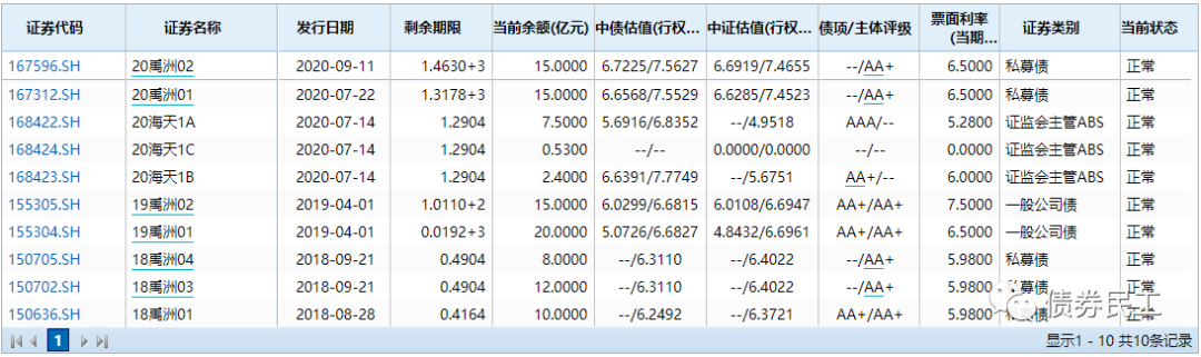 禹洲集團為為香港上市公司(股票代碼1628.HK),實際控制人為林龍安和郭英蘭。禹洲集團主要是通過子公司廈門禹洲鴻圖地產(chǎn)開發(fā)有限公司進行融資,國內(nèi)主體信用評級為AA+,目前在國內(nèi)存續(xù)多只私募債券和ABS產(chǎn)品。