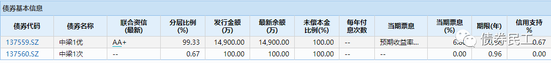 中梁集團為香港上市公司(股票代碼2772.HK),實際控制人為楊劍,國內(nèi)主體信用評級為AA+。經(jīng)初步查詢,目前在國內(nèi)只有1.5億元資產(chǎn)證券化產(chǎn)品發(fā)行記錄。