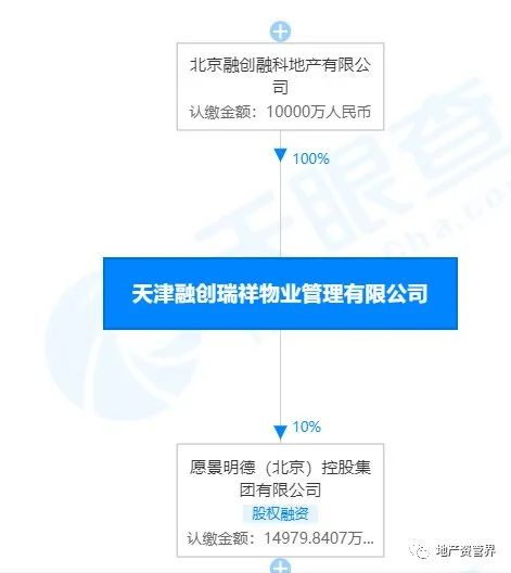 近日,地產資管界獲悉,融創旗下天津融創瑞祥物業管理有限公司(簡稱“融創瑞祥”)斥資14979.8407萬元,入股愿景明德(北京)控股集團有限公司(簡稱“愿景明德”)10%股份,躍升為第四大股東。