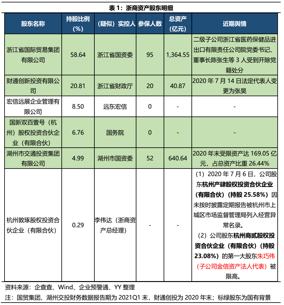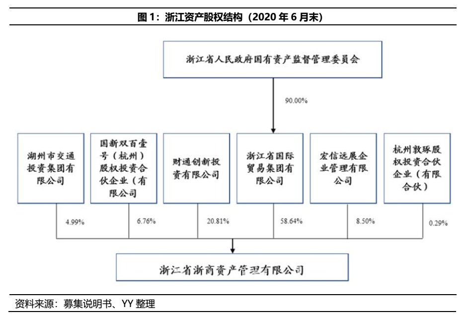 浙商資產成立于2013年8月,是浙江省第一家具有批量轉讓金融不良資產資質的省級資產管理公司。截至2020年6月末,公司控股股東為浙江省國際貿易集團有限公司,實控人為浙江省國資委。