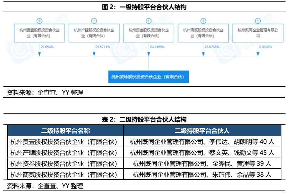 杭州敦琢股權投資合伙企業(有限合伙)系浙商資產員工一級持股平臺。執行事務合伙人均由杭州既同企業管理有限公司(注冊資本10萬,浙商資產總經理李偉達持股99%,運營管理部總經理廖益昶持股1%)擔任。此次持股員工主要是在關鍵崗位工作并對公司經營業績和持續發展有直接或較大影響的經營管理人員和業務骨干。持股人數共計159人,占員工人數比例63%左右。