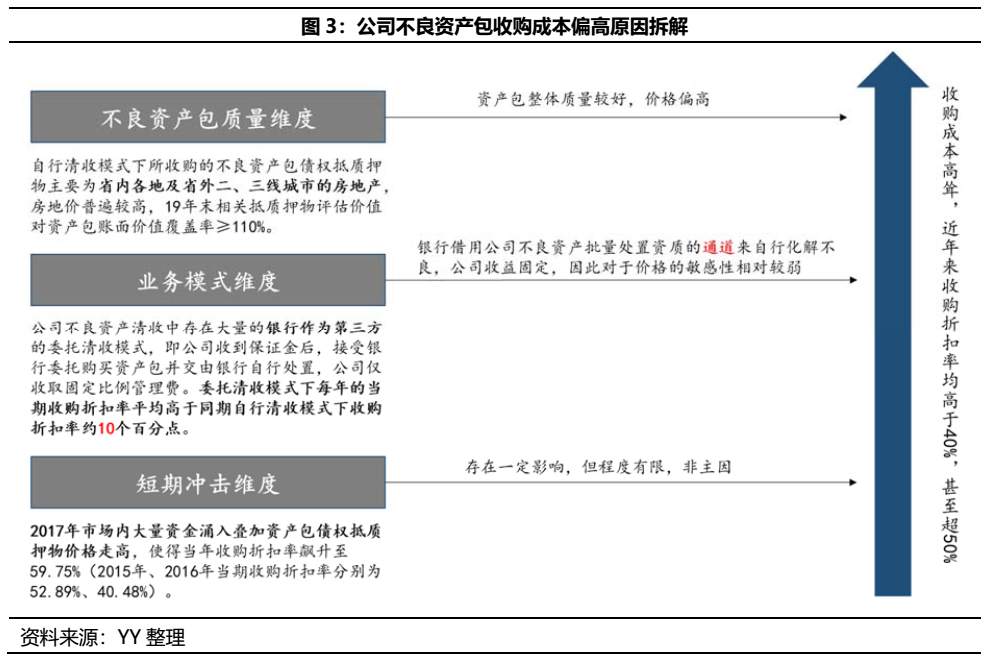 具體來看,銀行作為第三方的情況下,實際上是借用公司的通道來自行化解不良資產,公司定期確認部分收入;非銀作為第三方的情況下,實際上是向其他無不良批量收購資質但有業務需求的機構提供業務來源(如省內的浙越資產),公司一次性收取管理費。