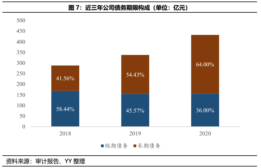 縱向來看,受公司不良資產業務規模擴張較快影響,公司債務增速也較快,至2020年末有息債務規模達432.46億元。不過新增部分主要為長期債務,從期限結構來看是相對好轉的趨勢,短期債務占比不斷下降,2020年末為36%。