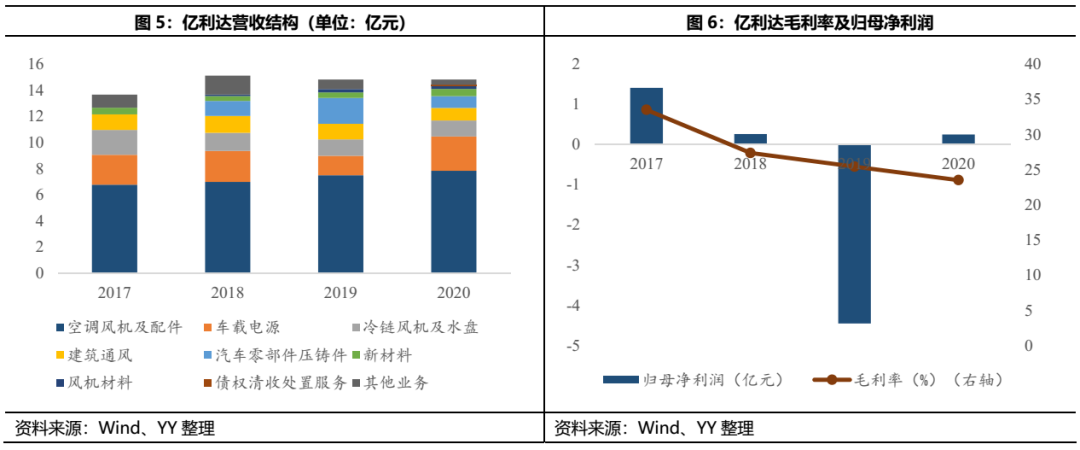 2018年末收購億利達后,公司拓展了工業科技業務板塊。億利達主營風機、新能源車載電池、輕量化汽車部件的研發、生產及銷售。