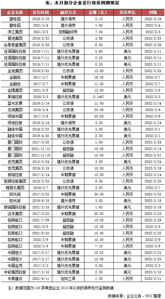 提前關(guān)注到2022年4月將有32筆債券到期,合計510.10億元,環(huán)比下降20.4%,償債壓力有所下降。單筆金額最高為中國恒大 2019年發(fā)行的12.5億美元境外優(yōu)先票據(jù)。