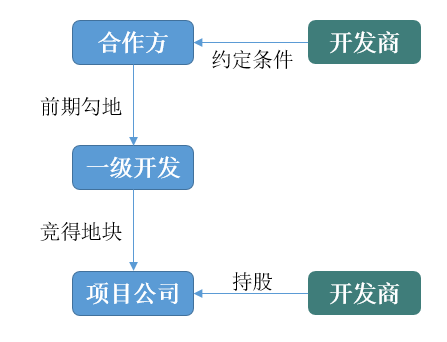合作方負責勾地的情形下,如合作方為一級開發方,可能存在一級開發收益或地價返還,為保障開發商資金安全、確保土地條件滿足開發商要求,開發商可在合作方競得土地、繳清地價后再入股項目公司,但項目公司設立時我司即應對其印鑒、證照等資料進行共管。開發商入股項目公司的方式可視勾地合作方是否參與二級開發,靈活采用股權轉讓、增資入股等方式。