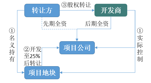 開發商向轉讓方提供借款(委托貸款或直接貸款)專項用于項目地塊開發的,轉讓方應將項目公司(證照、印鑒、資料等)及項目地塊全部移交給開發商管理(或共管),并應將項目地塊抵押給開發商或提供其他足額擔保。同時,項目地塊的開發應按開發商的建設方案進行,施工管理由開發商全程參與,工程款的支付由開發商監控、指示。在全部在建工程均為開發商墊資的情形下,交易結算時開發商墊資金額可與在建工程轉讓款抵銷,開發商僅向轉讓方現金支付土地使用權轉讓款。